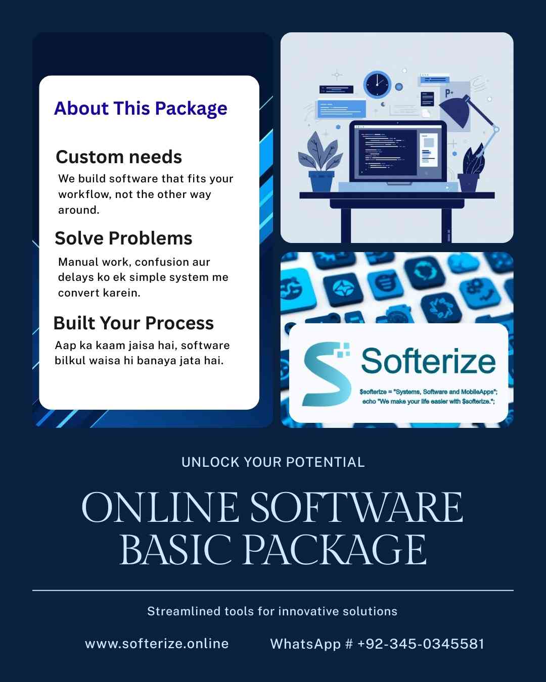 Yeh Online Software Basic Package un businesses ke liye hai jo apne internal kaam ko automate karna chahte hain. Is package me aap ka custom software WordPress ke andar ek secure plugin ki soorat me develop kiya jata hai, jahan sirf admin panel use hota hai, front website public nahi hoti.